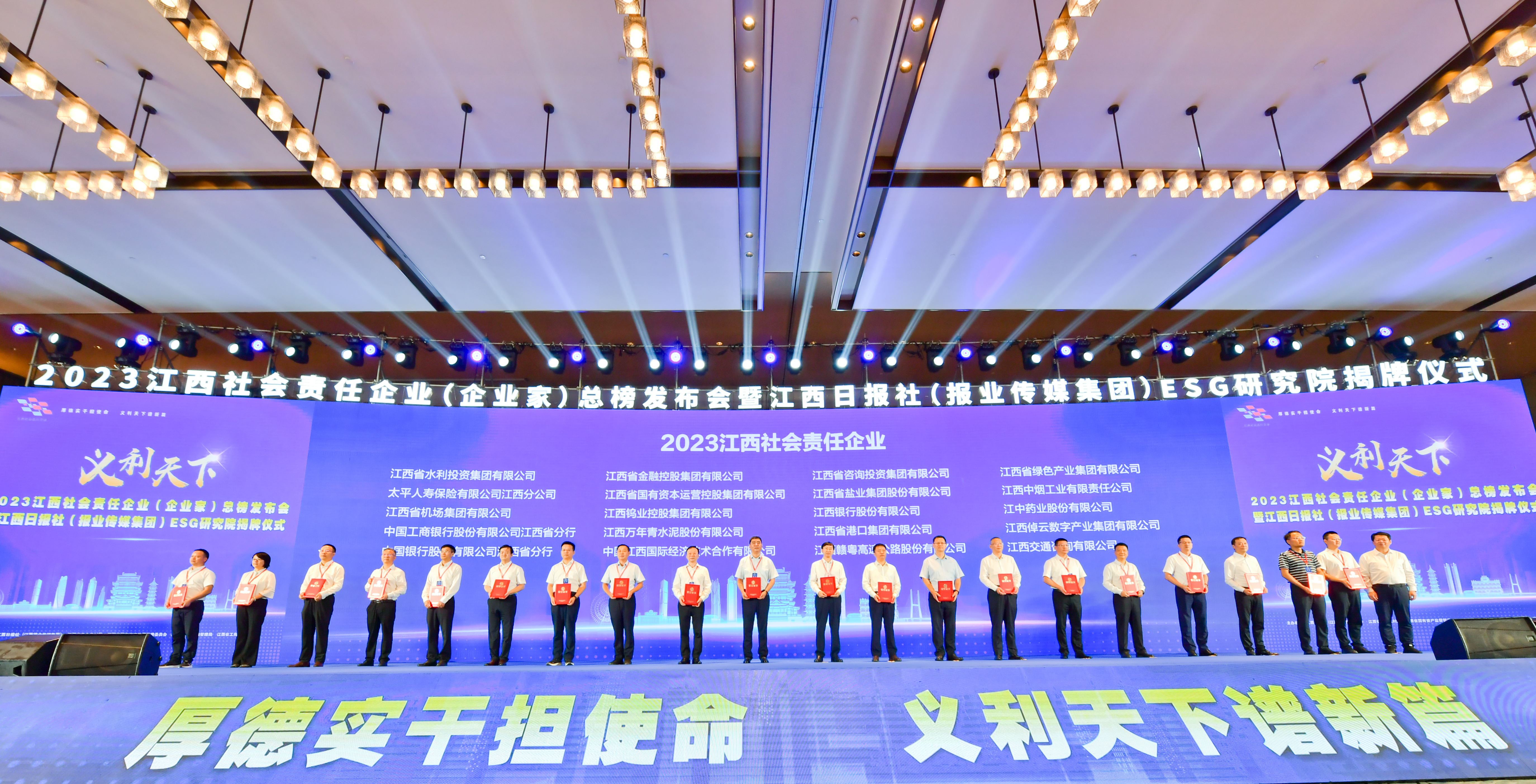 8月26日,“2023江西社会责任企业(企业家)”总榜发布会在南昌举行,公司获评“2023江西社会责任企业”。