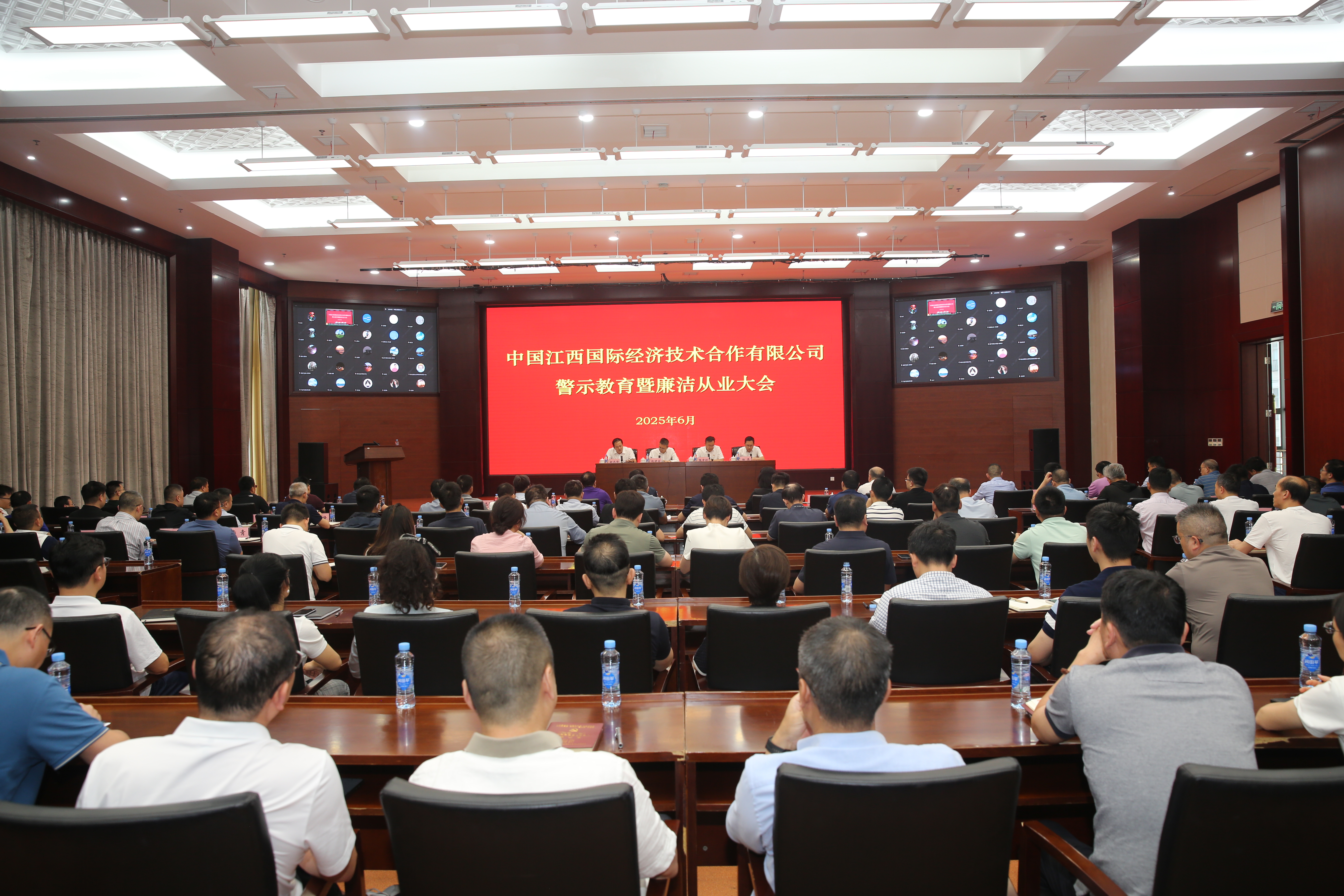 会议以现场+线上形式召开,在昌公司领导、中层副职以上管理人员、内设机构负责人及关键岗位人员在主会场参加会议,驻外机构负责人及其他职工通过云端参加会议。会议还组织观看了警示教育片《铁规矩硬杠杠》,并安排了廉洁从业辅导授课。