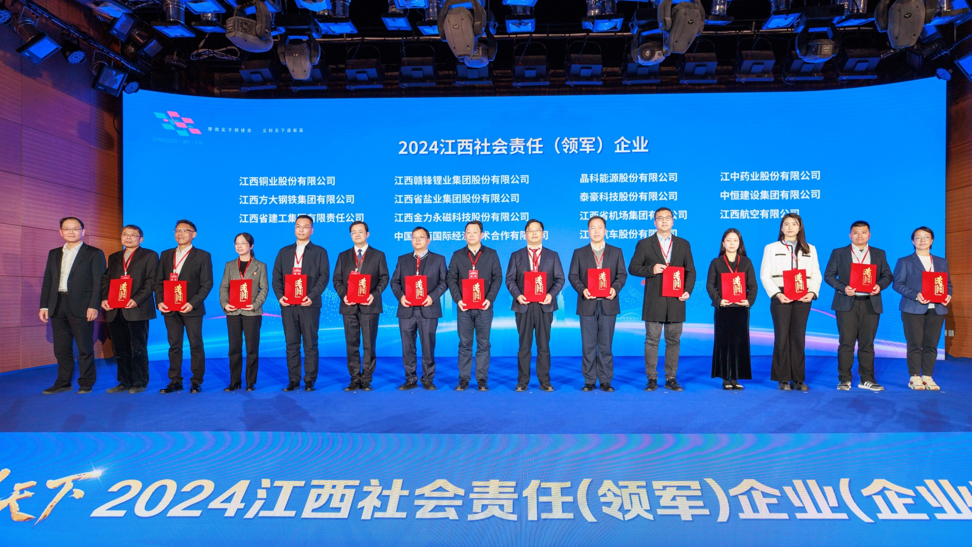 12月29日,2024江西社会责任(领军)企业名单公布,公司凭借在经济发展、社会贡献等方面突出表现,再次获评“江西社会责任(领军)企业”。